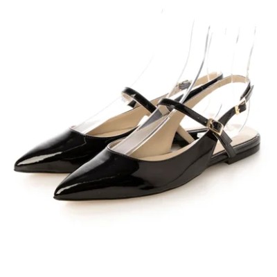 Low heel pumps, flat pumps, 1cm heel pumps, women's, easy to walk in, pain-free, CX2415 (black (tulle))